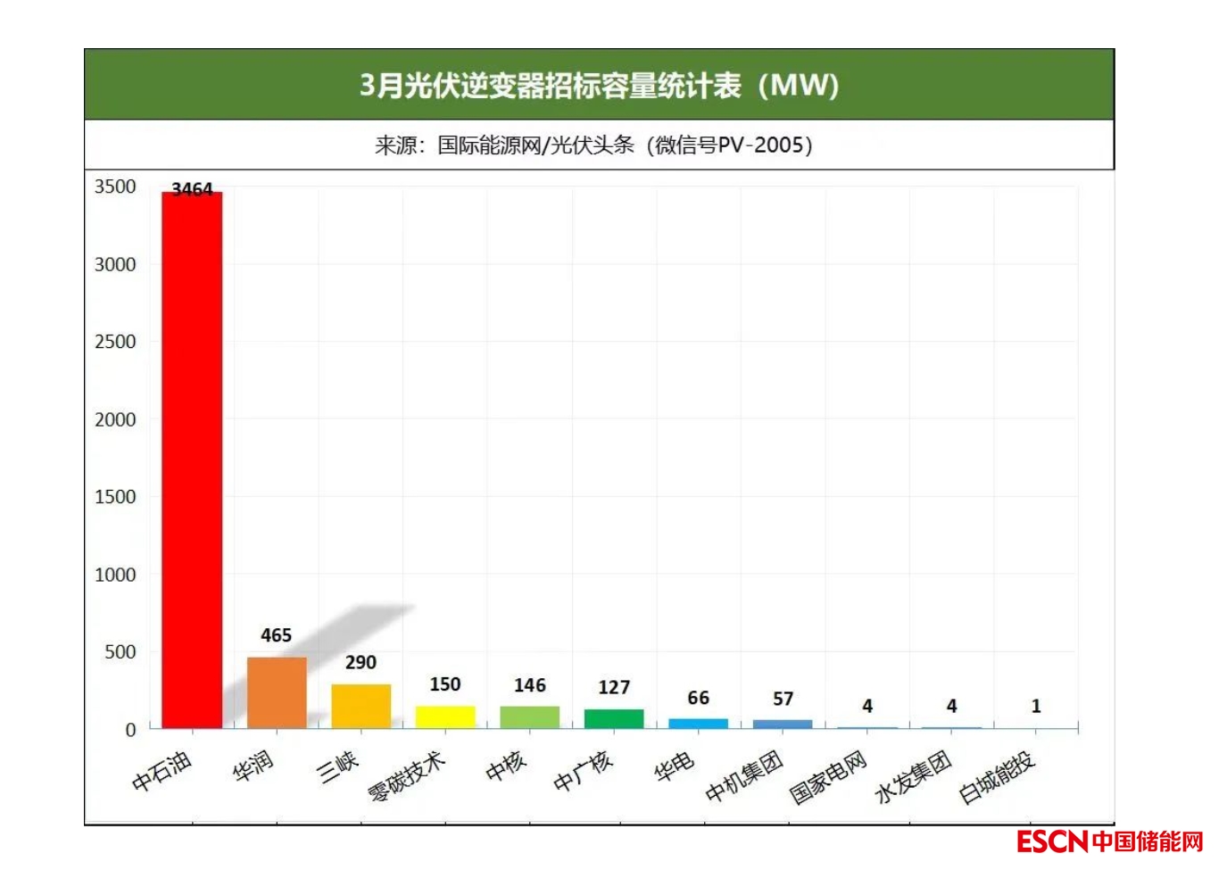國際能源網(wǎng)/光伏頭條(PV-2005)統(tǒng)計(jì),3月1日-3月31日國內(nèi)逆變器招投標(biāo)市場,上能電氣、陽光電源、古瑞瓦特、華為、固德威、株洲變流等18家企業(yè),共同贏得了17.84GW的逆變器招標(biāo)采購訂單。
