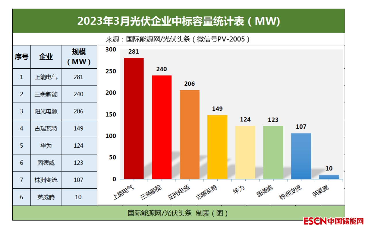 上能、陽光、古瑞瓦特領(lǐng)銜中標(biāo)榜