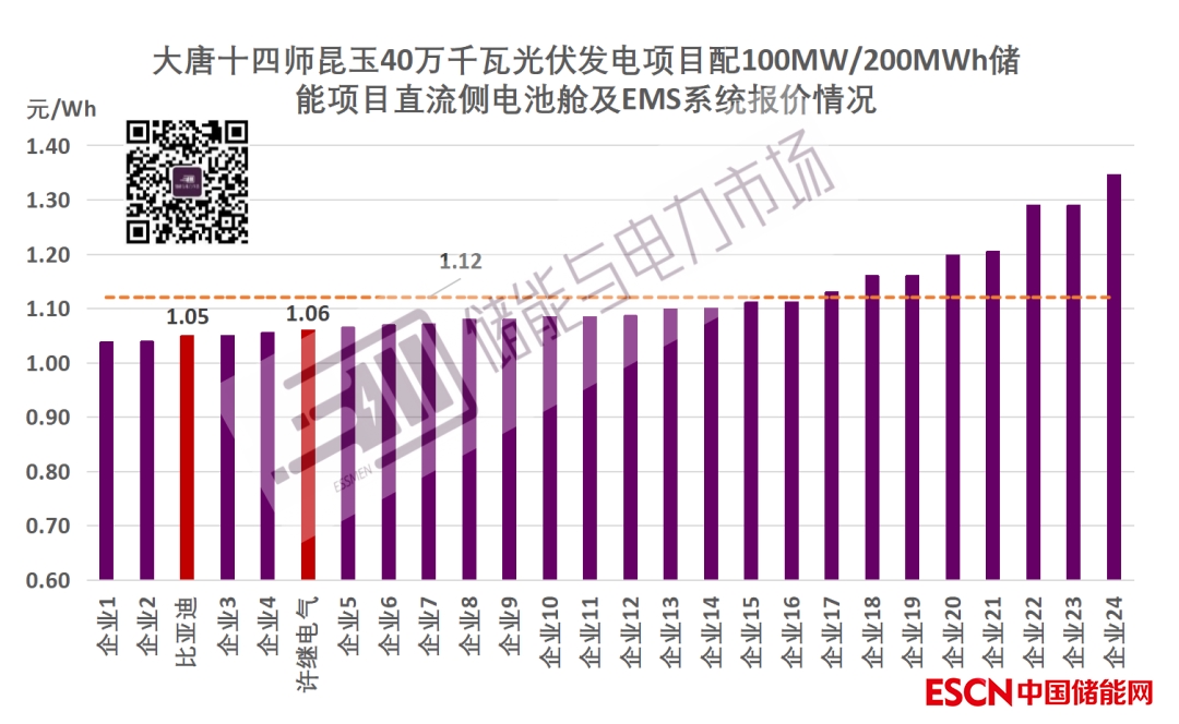據(jù)悉,此次招標(biāo)吸引了近30家企業(yè)參與競(jìng)爭(zhēng)。報(bào)價(jià)區(qū)間1.04-1.35元/Wh。平均報(bào)價(jià)1.12元/Wh。此次預(yù)中標(biāo)價(jià)格1.05元/Wh又創(chuàng)新低。相較于3月開(kāi)標(biāo)的單直流側(cè)1.18元/Wh,下降11%。(3月直流側(cè)開(kāi)標(biāo)情況可參考文章:1.18-1.483元/Wh,龍?jiān)措娏?.2GWh直流側(cè)集采開(kāi)標(biāo),央企儲(chǔ)能集采分段招標(biāo)或?qū)⒊哨厔?shì))。