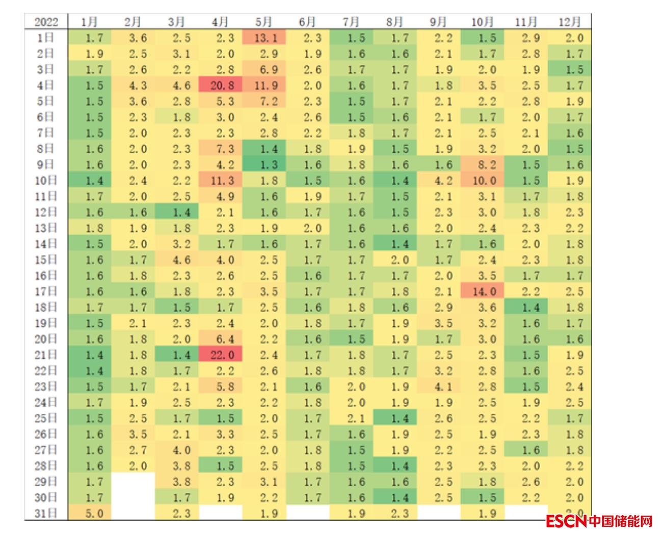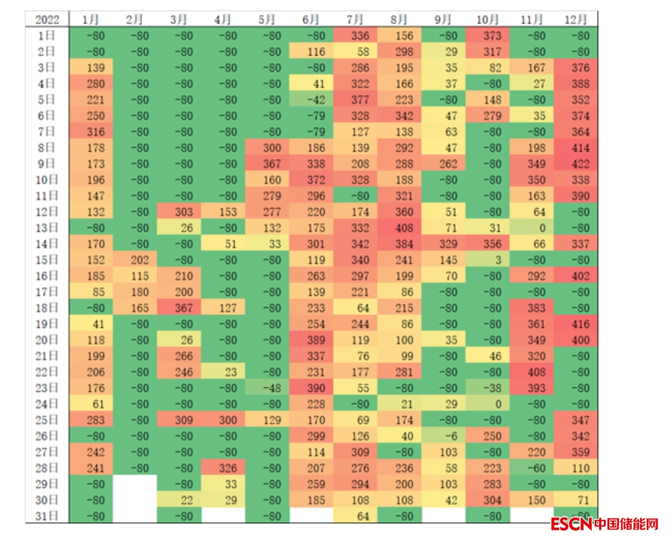 除峰谷比以外,通過該省的現(xiàn)貨市場出清價格也能看出一定端倪。據(jù)統(tǒng)計,2022年該省日前出清出現(xiàn)負價的天數(shù)達161天,這一數(shù)字與峰谷比>2的天數(shù)156天基本一致。因為火電機組不太可能會報負價,出清負價就意味著市場化火電機組全部都已經(jīng)不定價了,也就是說即使所有煤機都降至第一點出力(深調(diào)極限出力或最低技術(shù)出力)中午谷段還是過不去。風光不能棄、外電難壓降,此時省內(nèi)火電停機幾乎就是必然的選擇。