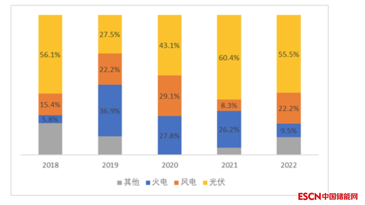 以上述現(xiàn)貨試點省份為例。該省近年來新能源裝機增長勢頭迅猛,近5年新增裝機中新能源裝機占比近70%,其中光伏占比近50%。