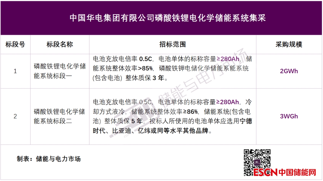 中國(guó)儲(chǔ)能網(wǎng)訊:4月14日,中國(guó)華電集團(tuán)有限公司磷酸鐵鋰電化學(xué)儲(chǔ)能系統(tǒng)集采招標(biāo)公告發(fā)布。采購2小時(shí)儲(chǔ)能系統(tǒng)總規(guī)模達(dá)5GWh,并且要求電池單體容量≥280Ah。