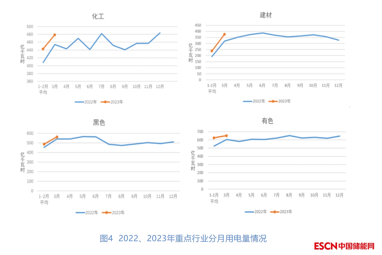 3月份,化工行業(yè)用電量479億千瓦時(shí),同比增長3.9%;建材行業(yè)用電量377億千瓦時(shí),同比增長17.7%;黑色金屬冶煉行業(yè)用電量562億千瓦時(shí),同比增長5.0%;有色金屬冶煉行業(yè)用電量652億千瓦時(shí),同比增長2.8%。