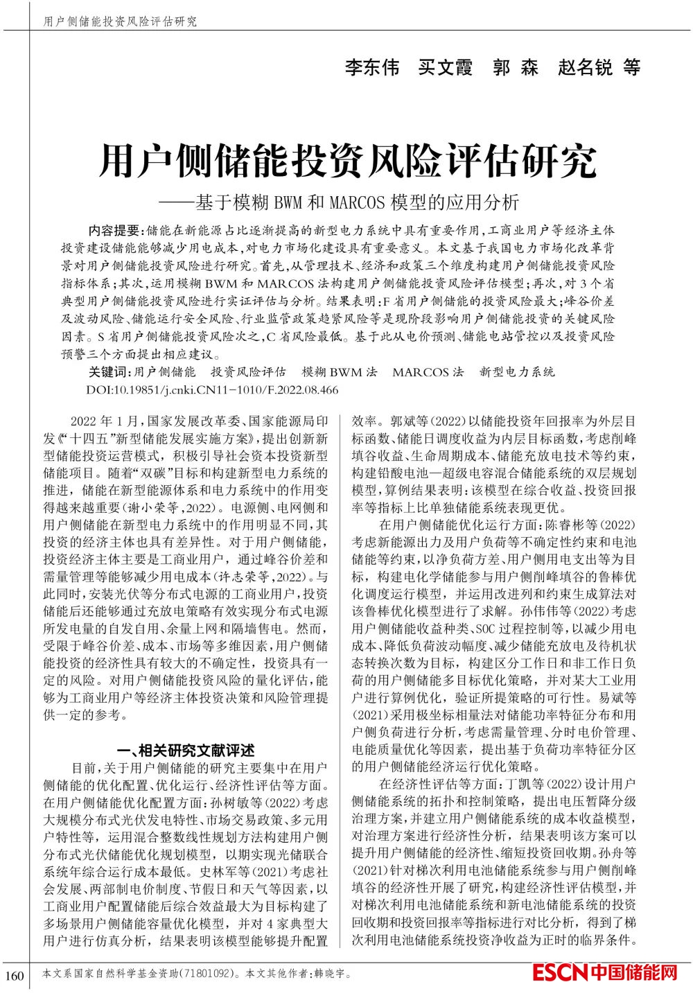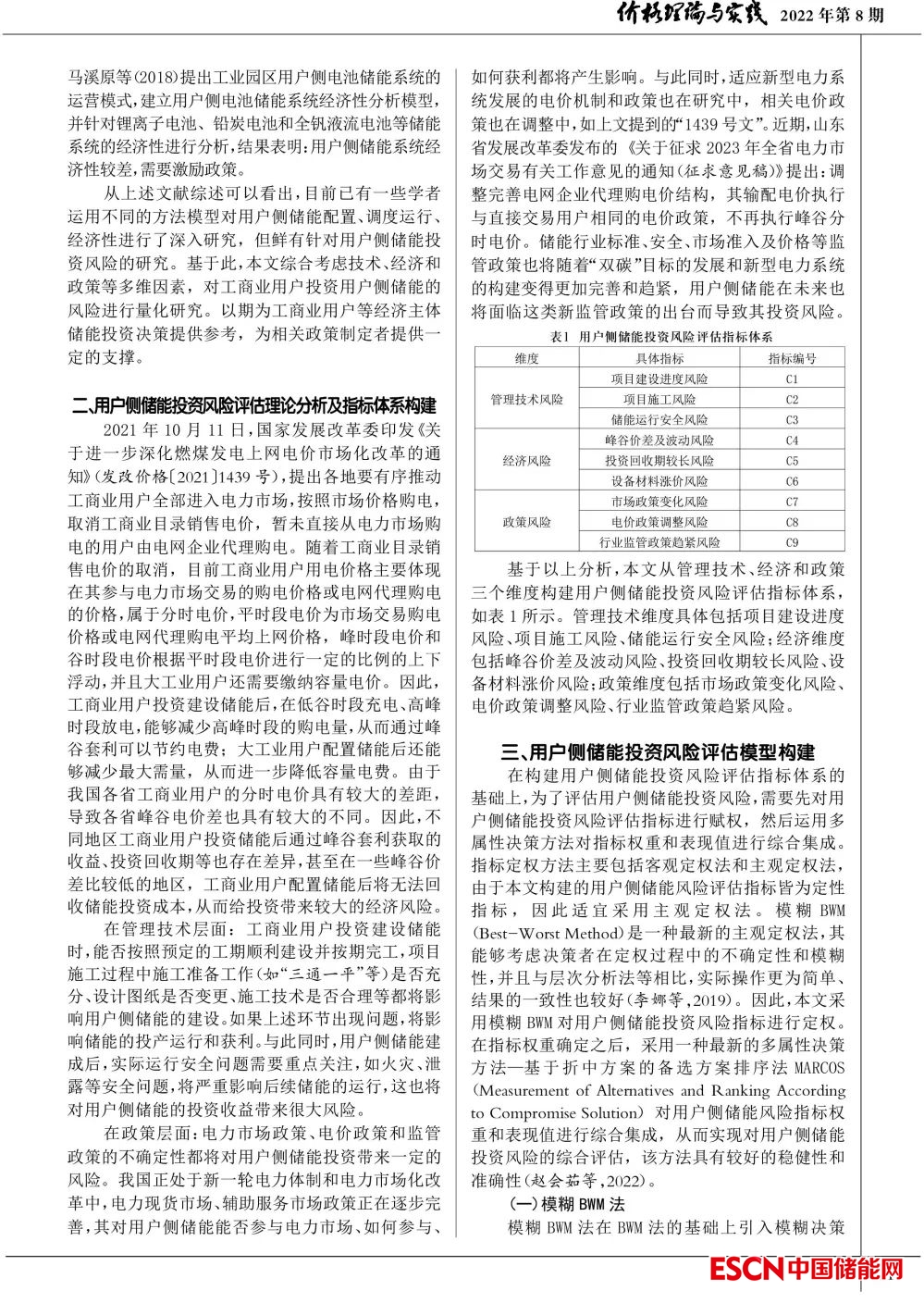 用戶側(cè)儲能投資風(fēng)險(xiǎn)評估研究
