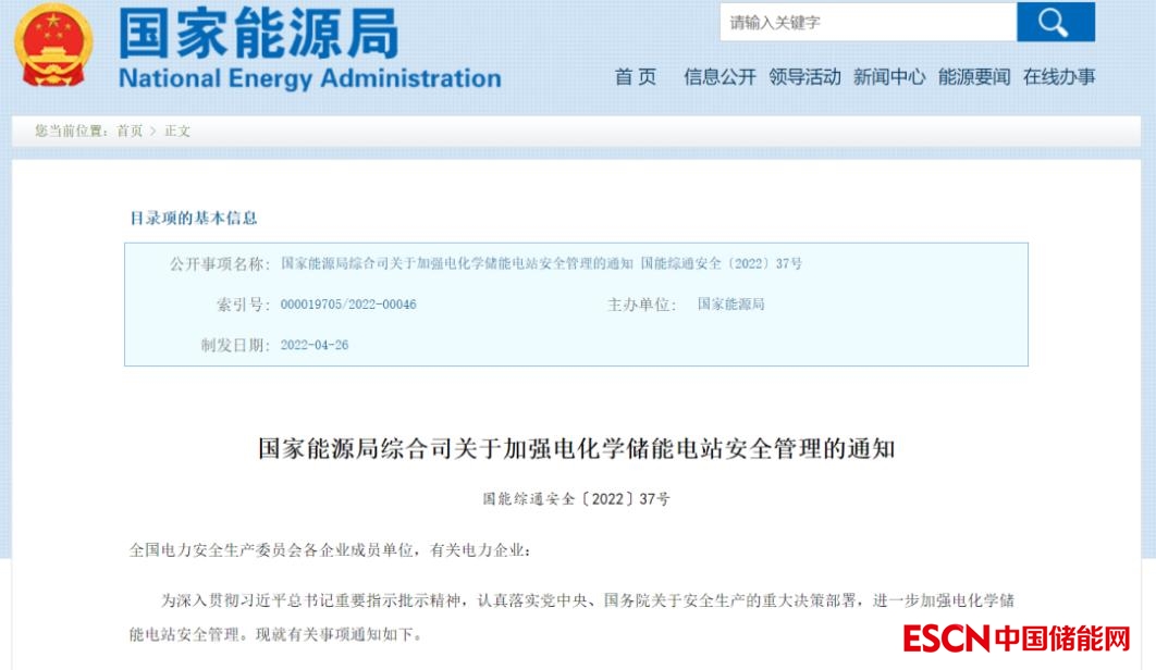5月25日,國家能源局綜合司發(fā)布的《關(guān)于加強(qiáng)電化學(xué)儲(chǔ)能電站安全管理的通知》,從高度重視電化學(xué)儲(chǔ)能電站安全管理、加強(qiáng)電化學(xué)儲(chǔ)能電站規(guī)劃設(shè)計(jì)安全管理等七個(gè)方面對電化學(xué)儲(chǔ)能電站安全提出了具體措施。