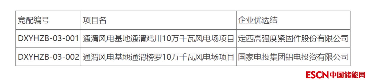 中國儲能網(wǎng)訊:4月17日,甘肅定西市發(fā)改委公示了通渭風(fēng)電基地20萬千瓦風(fēng)電場項(xiàng)目競爭性配置結(jié)果,其中定西高強(qiáng)度緊固件股份有限公司中標(biāo)雞川10萬千瓦風(fēng)電場項(xiàng)目,國家電投集團(tuán)鋁電投資有限公司中標(biāo)榜羅10萬千瓦風(fēng)電場項(xiàng)目。