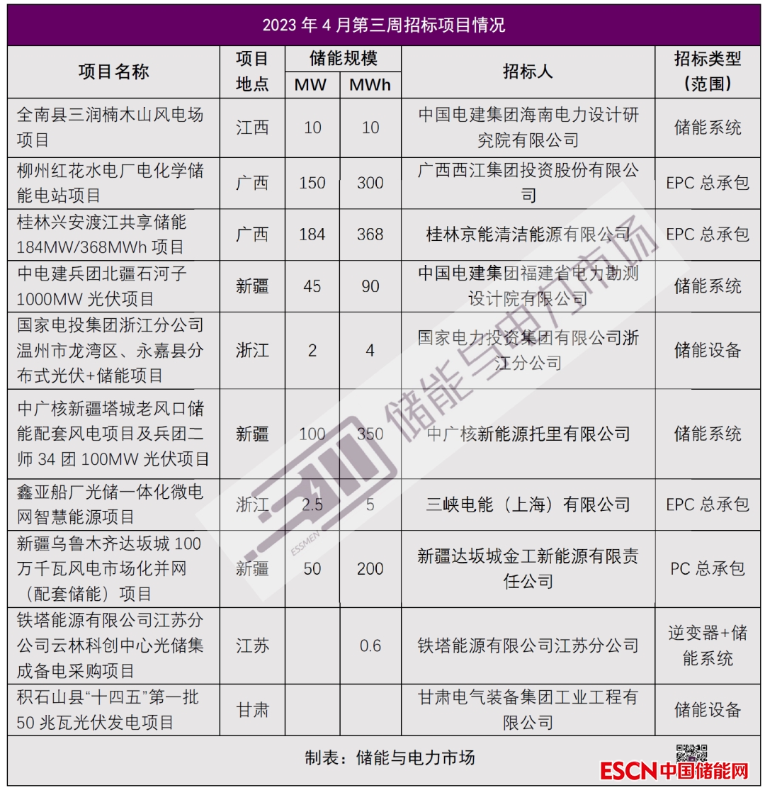 另外,4月份第三周,超過1.3GWh的項(xiàng)目處于招標(biāo)狀態(tài)。中國儲(chǔ)能市場活躍。