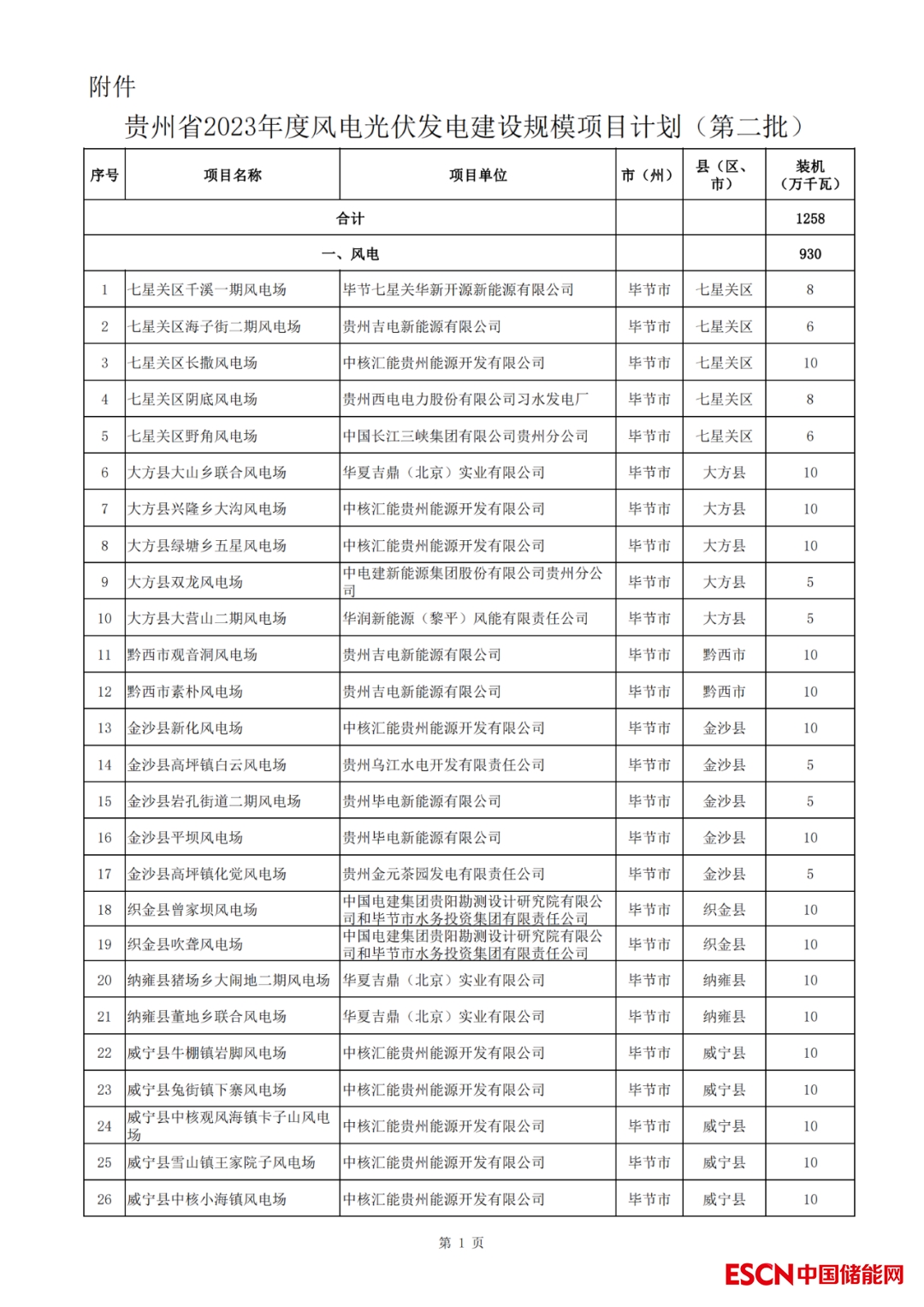 附件:貴州省2023年度風(fēng)電光伏發(fā)電建設(shè)規(guī)模項目計劃(第二批)