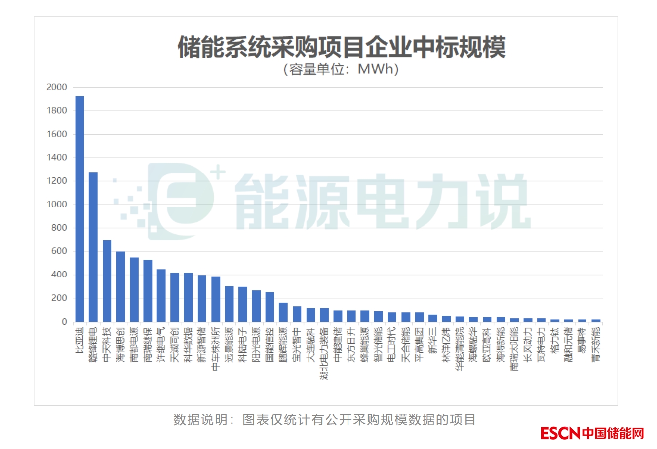 從中標(biāo)規(guī)模上看,比亞迪位榜首,中標(biāo)規(guī)模超2GWh,贛鋒鋰電中標(biāo)規(guī)模超1GWh,此外中天科技、海博思創(chuàng)、南都電源、南瑞繼保等均有不錯(cuò)的成績(jī)。