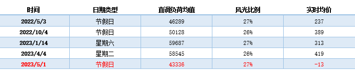 各路專家、學(xué)者和市場(chǎng)從業(yè)人員,對(duì)負(fù)價(jià)格的成因進(jìn)行了的解讀:五一假期負(fù)荷需求下降加之新能源大發(fā),壓縮了火電競(jìng)價(jià)空間,導(dǎo)致現(xiàn)貨價(jià)格走低。也有些專家從市場(chǎng)設(shè)計(jì)的角度,對(duì)設(shè)置負(fù)電價(jià)的規(guī)則合理性進(jìn)行了解釋,強(qiáng)調(diào)負(fù)電價(jià)的出現(xiàn)是對(duì)電力在某些時(shí)刻供大于求的正常反映,且有利于引導(dǎo)電力用戶削峰填谷、保障新能源高水平消納利用。