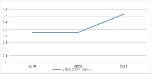 圖5 2019年~2021年多氟多總資產周轉率的變動情況