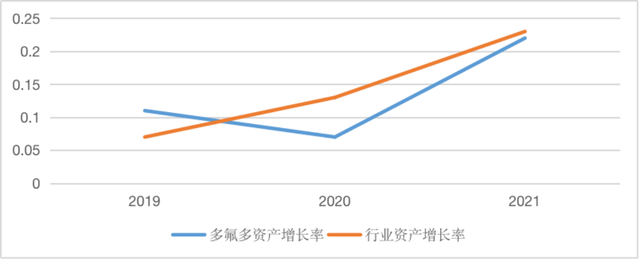 圖4 2019年~2021年多氟多和所在行業(yè)的資產增長率的變動情況