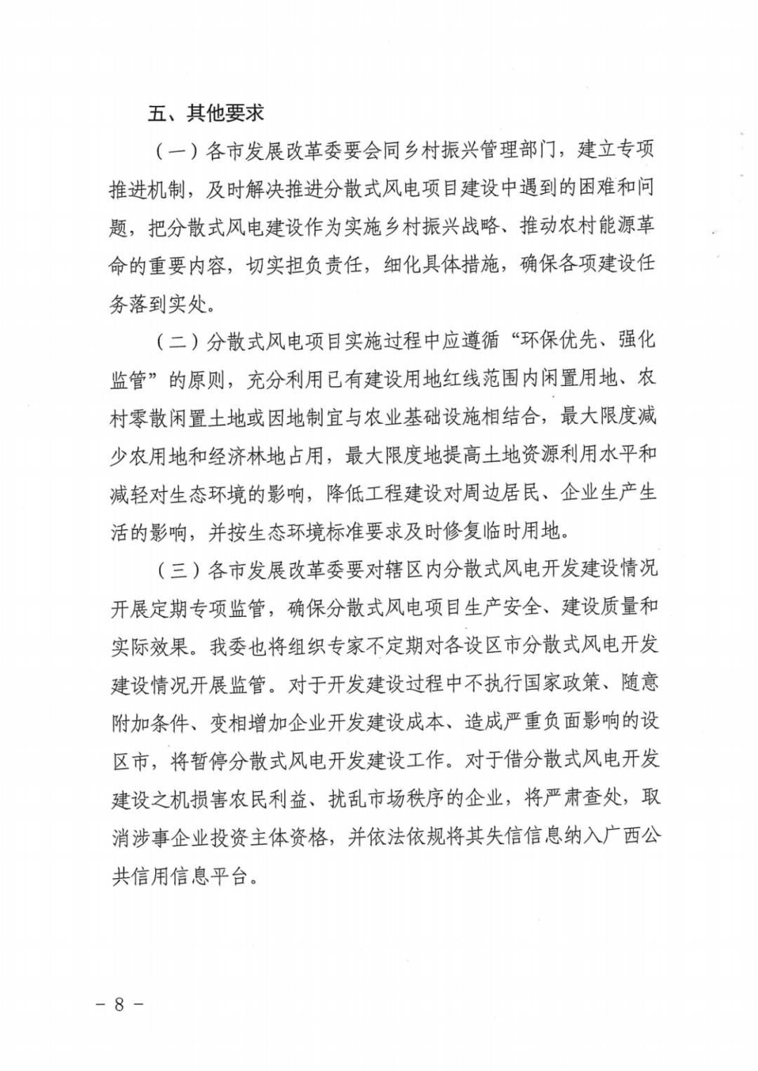 通知指出,分散式風(fēng)電項(xiàng)目開發(fā)建設(shè)要求包括,根據(jù)《國家能源局關(guān)于印發(fā)<分散式風(fēng)電項(xiàng)目開發(fā)建設(shè)暫行管理辦法>的通知》有關(guān)要求,結(jié)合廣西實(shí)際,現(xiàn)階段分散式風(fēng)電建設(shè)模式暫定為以下兩類,其余的風(fēng)電項(xiàng)目按集中式管理:
