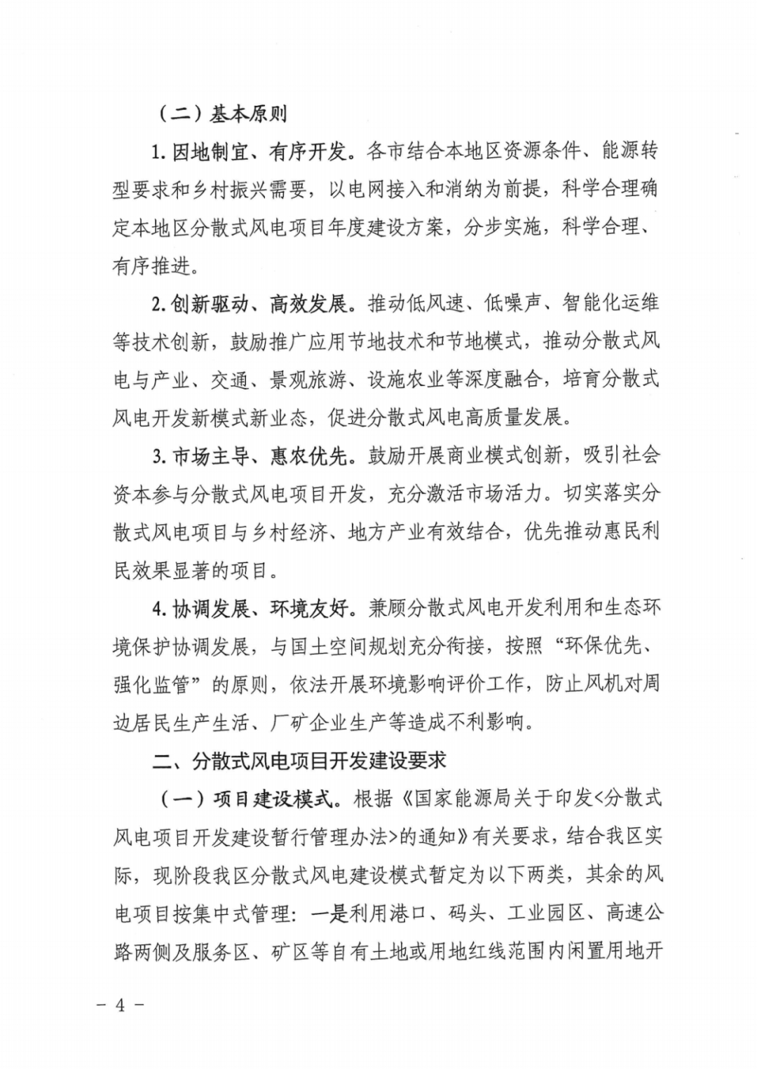 一是利用港口、碼頭、工業(yè)園區(qū)、高速公路兩側(cè)及服務(wù)區(qū)、礦區(qū)等自有土地或用地紅線范圍內(nèi)閑置用地開發(fā)的分散式風(fēng)電項(xiàng)目,裝機(jī)總?cè)萘吭瓌t上不超過5萬千瓦,接入電壓等級為110千伏及以下。