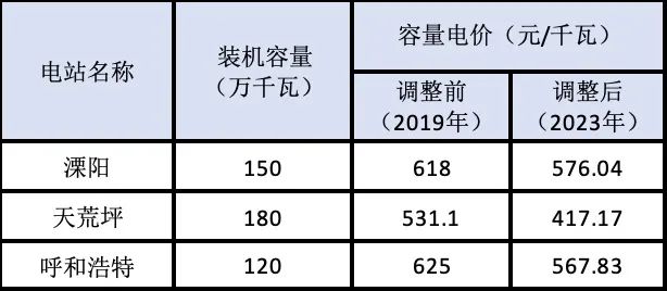 表:部分容量電價(jià)下調(diào)的抽水蓄能電站