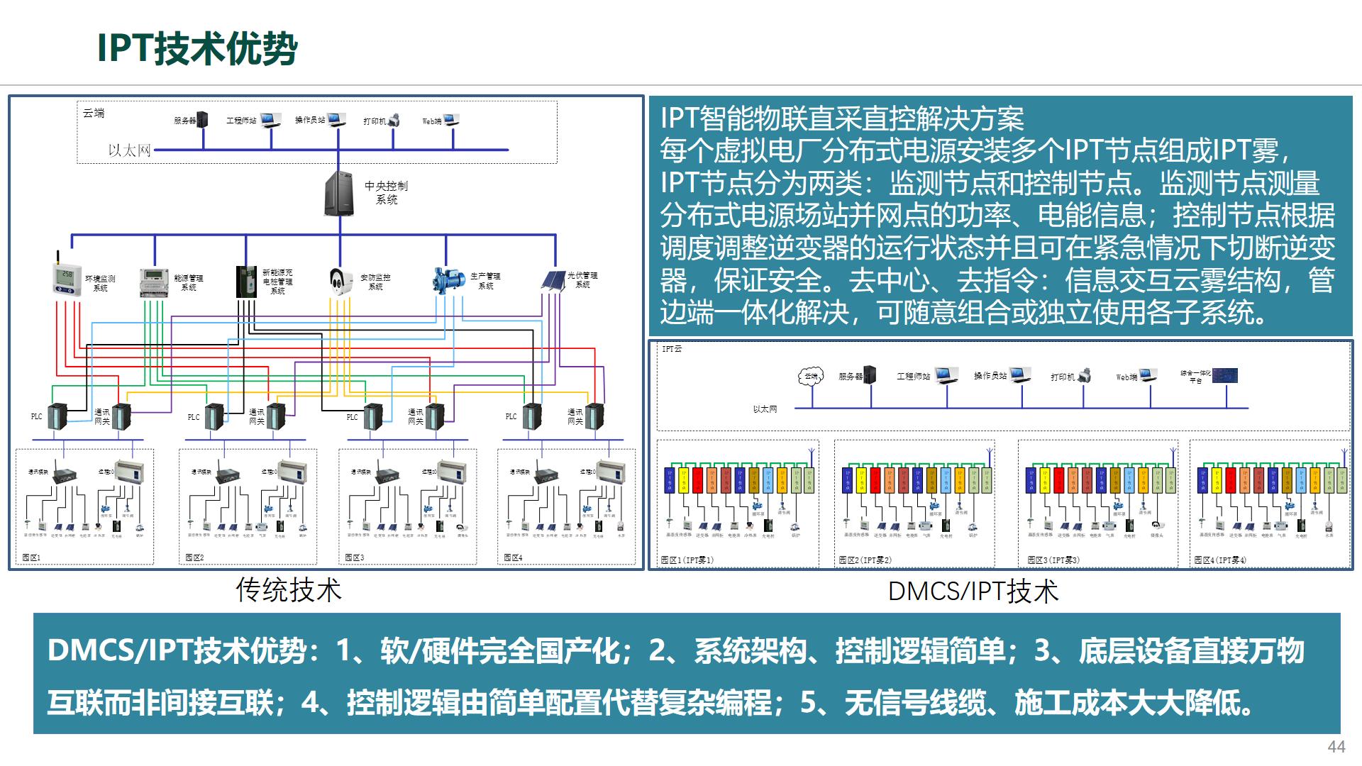 落實(shí)雙碳目標(biāo)離不開(kāi)分布式光伏監(jiān)控,在光伏臺(tái)區(qū)通過(guò)現(xiàn)有“二合一”融合終端加裝IPT霧網(wǎng)絡(luò)分布式智能測(cè)控節(jié)點(diǎn)裝置,導(dǎo)軌式安裝香煙盒大小,完全分布式的方案,監(jiān)控各個(gè)設(shè)備的運(yùn)行互不干擾,信息的交互按照指定的測(cè)控周期進(jìn)行,最小測(cè)控周期可達(dá)毫秒級(jí)別,完全滿足時(shí)效性要求,性?xún)r(jià)比高真正實(shí)現(xiàn)萬(wàn)物互聯(lián),在增量臺(tái)區(qū)可以與現(xiàn)有融合終端作為內(nèi)嵌模塊升級(jí)為“三合一”實(shí)現(xiàn)存量、增量分布式光伏的全覆蓋,對(duì)下仍采用“融合終端-智能電表-逆變器”模式。IPT裝置還可以應(yīng)用在用戶能耗監(jiān)測(cè)、綜合能源、新型負(fù)荷管理、配電自動(dòng)化等業(yè)務(wù)領(lǐng)域。