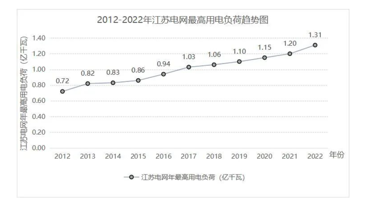 據(jù)了解,2017年夏季,江蘇電網(wǎng)最高用電負荷首次突破1億千瓦,之后年年遞增。