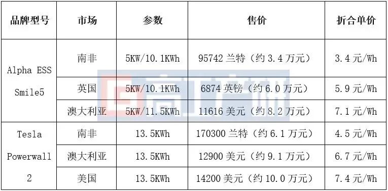 典型戶(hù)儲(chǔ)產(chǎn)品不同市場(chǎng)終端售價(jià)對(duì)比