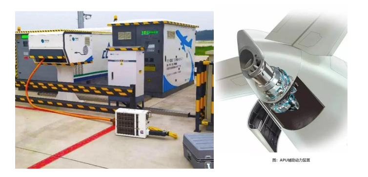 APU主要為飛機在地面保障期間提供電源和氣源。常規(guī)模式下,飛機在地面保障期間,飛機關閉發(fā)動機(機翼下的渦扇發(fā)動機),開啟APU,由于APU使用的是渦輪發(fā)動機,所以能耗大、噪聲大、污染多,且排放的尾氣是機場的主要污染物。