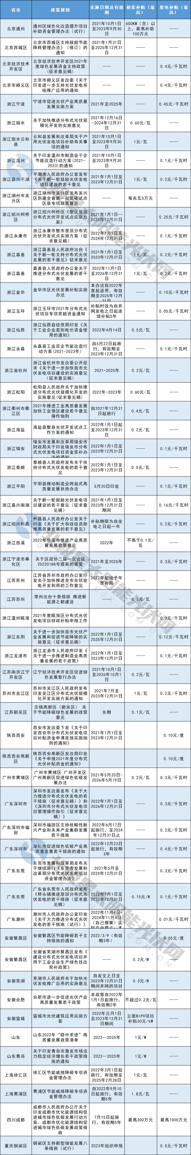 《2022年朝陽區(qū)節(jié)能減碳專項資金申報指南》明確對新能源和可再生能源項目(太陽能光熱、地熱能、風能、生物質能等),給予不超過總投資額30%的補助。對分布式光伏發(fā)電項目,按照裝機容量,一次性給予每千瓦1000元的補助。