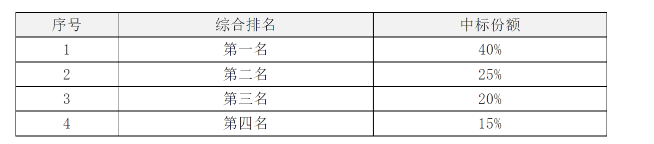 據(jù)招標(biāo)公告,本項(xiàng)目中標(biāo)人數(shù)量為4個(gè),每個(gè)中標(biāo)人對(duì)應(yīng)的份額如下: