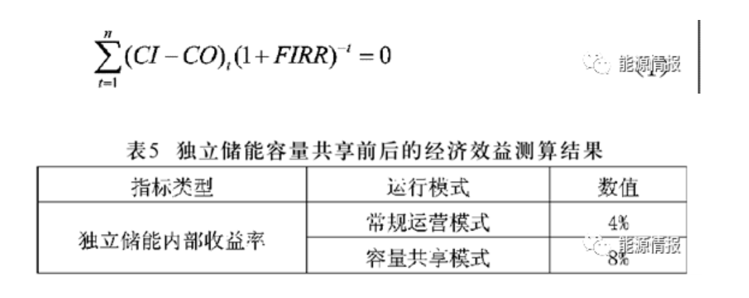 通過計(jì)算獨(dú)立儲(chǔ)能在常規(guī)運(yùn)營和容量共享兩種模式下的內(nèi)部收益率評(píng)價(jià)其經(jīng)濟(jì)性,計(jì)算公式如式(1)所示,計(jì)算結(jié)果如表5所示。