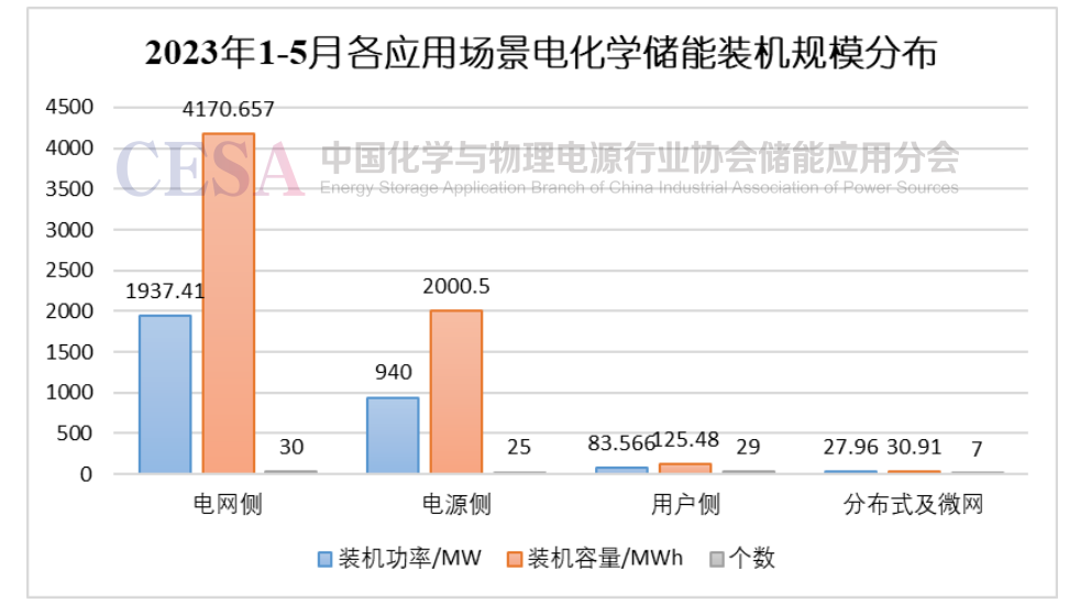 圖6 2023年1-5月各應(yīng)用場景電化學(xué)儲能裝機(jī)規(guī)模