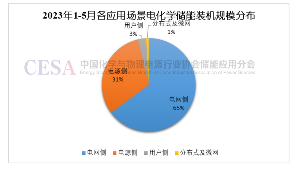 圖7 2023年1-5月各應(yīng)用場景電化學(xué)儲能裝機(jī)規(guī)模占比分布
