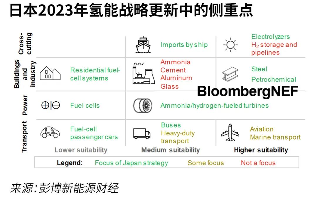 更新后戰(zhàn)略最終將日本的用氫重點擴大至供熱、鋼鐵和石化等難以減排的行業(yè),但仍然缺乏對這些行業(yè)的量化目標。重型運輸、航空和海運也在這一戰(zhàn)略中占有重要地位。日本政府還熱衷于使用以氫生產的合成甲烷以及生物甲烷和碳抵消來為城市燃氣脫碳。
