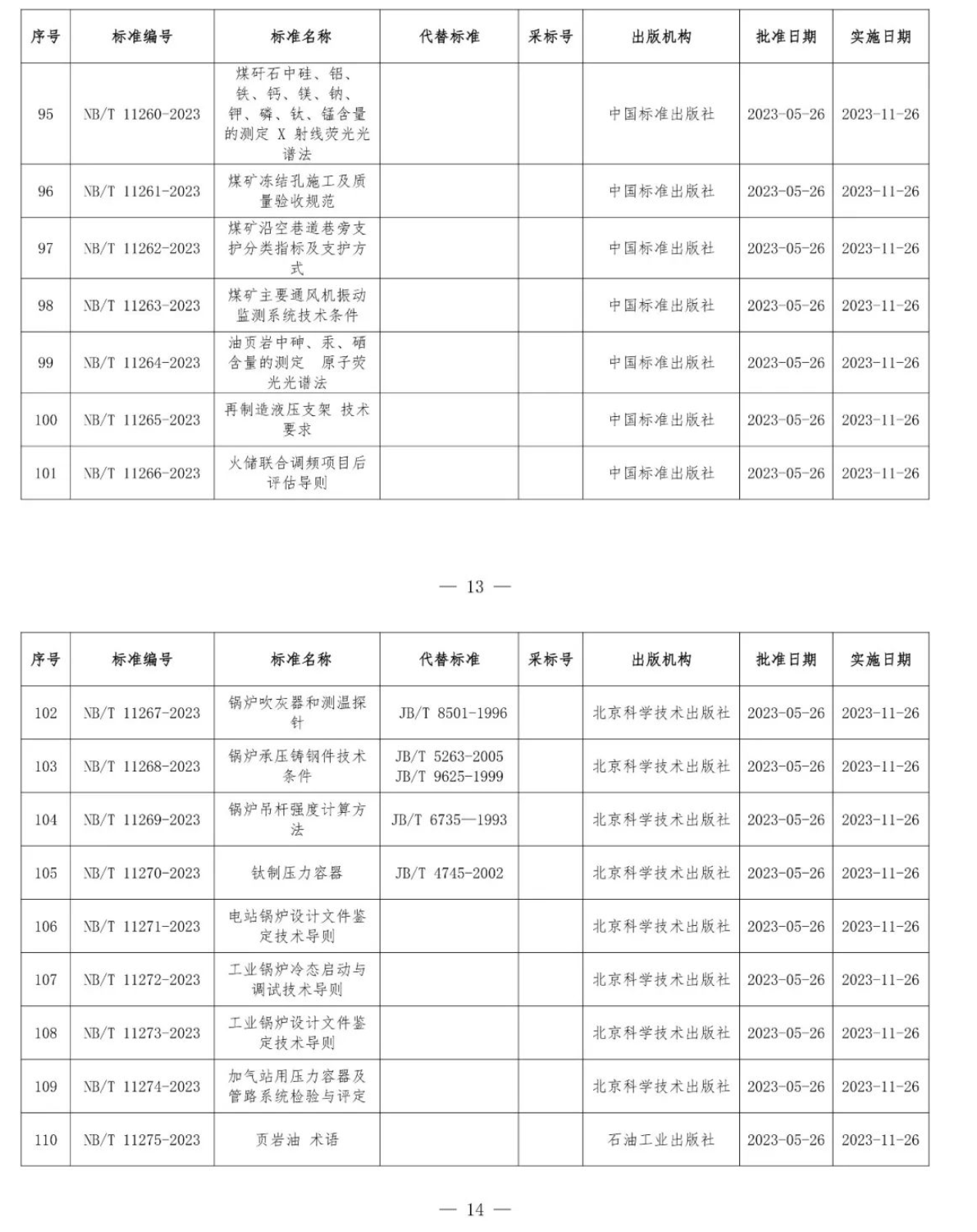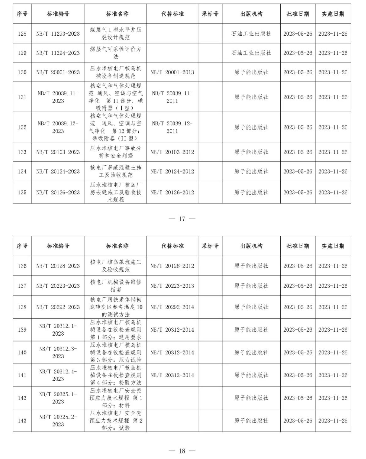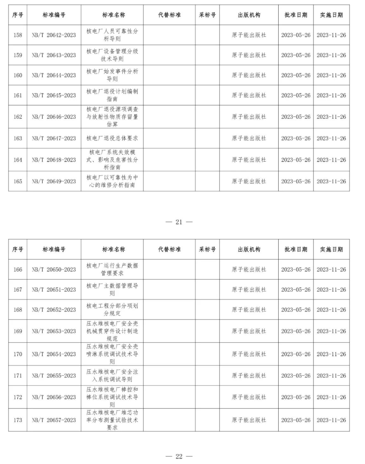 根據(jù)《中華人民共和國標準化法》《能源標準化管理辦法》,國家能源局批準《新能源基地送電配置新型儲能規(guī)劃技術導則》等310項能源行業(yè)標準(附件1)、《Code for Seismic Design of Hydropower Projects》等19項能源行業(yè)標準外文版(附件2),現(xiàn)予以發(fā)布。