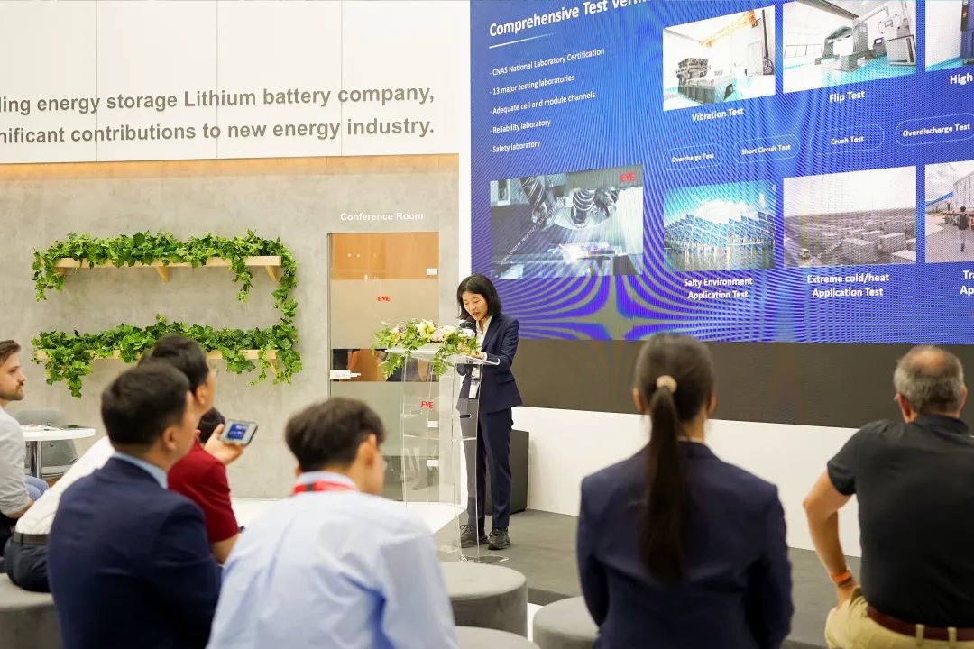 面對(duì)歐洲的智慧能源市場(chǎng),億緯儲(chǔ)能積極與各界專家、學(xué)者和行業(yè)領(lǐng)袖進(jìn)行交流。億緯儲(chǔ)能研究所所長(zhǎng)易昊昊博士以“ Reliable & Intelligent ”為主題為大家積極分享了億緯儲(chǔ)能解決方案,暢談儲(chǔ)能新發(fā)展。她表示億緯儲(chǔ)能將發(fā)布液冷系統(tǒng)產(chǎn)品及云邊協(xié)同儲(chǔ)能電池大數(shù)據(jù)云平臺(tái) EVE Big Data Cloud,持續(xù)引領(lǐng)儲(chǔ)能行業(yè)高質(zhì)量發(fā)展。