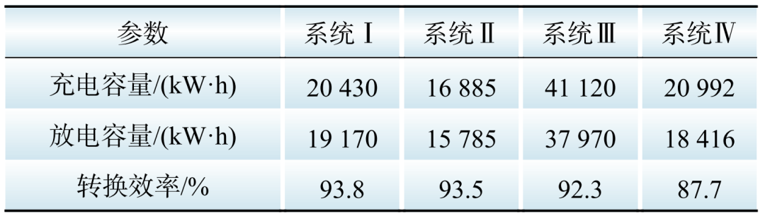 表8 不同儲(chǔ)能分系統(tǒng)充放電轉(zhuǎn)換效率