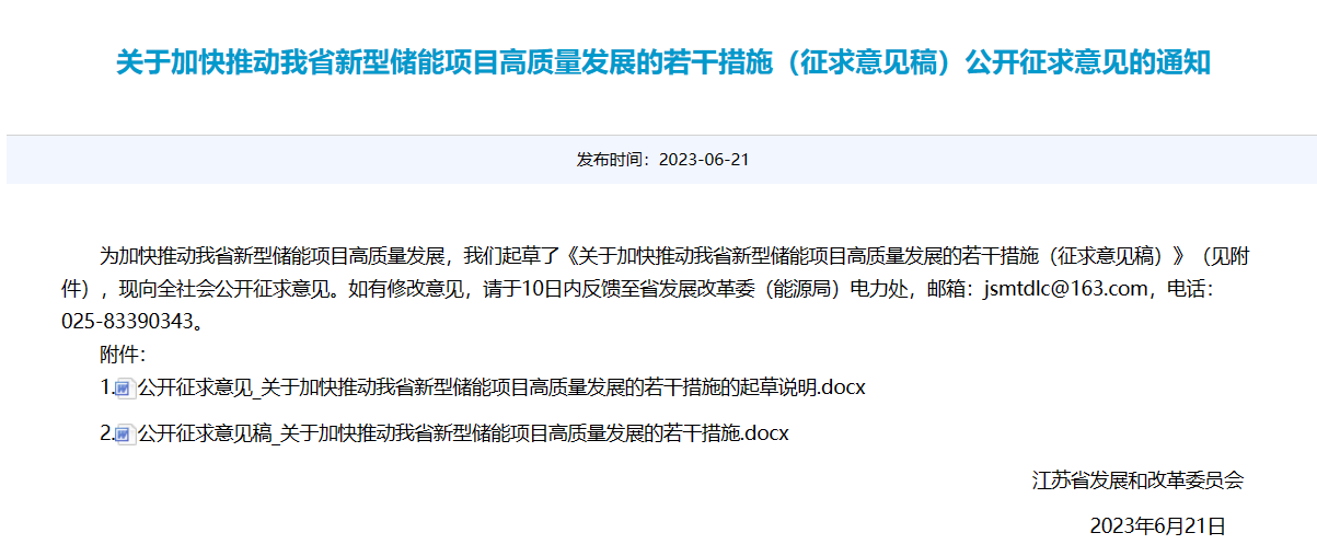 中國儲能網(wǎng)訊:儲能與電力市場獲悉,江蘇發(fā)改委近日印發(fā)了《關(guān)于加快推動我省新型儲能項目高質(zhì)量發(fā)展的若干措施(公開征求意見稿)》。