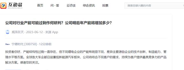 中國(guó)儲(chǔ)能網(wǎng)訊:寧德時(shí)代6月21日在互動(dòng)平臺(tái)表示,產(chǎn)能結(jié)構(gòu)性過(guò)剩一直存在,但不同鋰電企業(yè)的產(chǎn)能有明顯不同,差異主要源自企業(yè)的技術(shù)創(chuàng)新、制造能力、管理水平等方面。全球各大車(chē)企都日益重視新能源汽車(chē)板塊,公司將結(jié)合不同客戶(hù)的需求,持續(xù)為客戶(hù)提供最具競(jìng)爭(zhēng)力的產(chǎn)品解決方案。