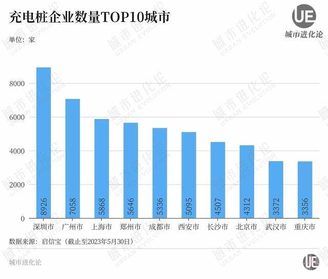 在頭部城市優(yōu)勢集聚的同時,亦不斷有后來者入局。啟信寶顯示,2023年1-5月,成都、西安、武漢、長沙均闖入充電樁企業(yè)增量榜前十,增量均在40家以上,成為市場格局新的挑戰(zhàn)者。
