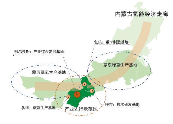 進入“十四五”后,內蒙古提出要打造“北疆綠氫城”的新名片,助力自治區(qū)能源行業(yè)轉型升級發(fā)展的總體戰(zhàn)略目標。并提出到 2025 年,要初步形成國內領先的氫能制取、儲運和應用一體化發(fā)展的產業(yè)生態(tài)集群,基本構建全國重要的綠氫生產輸出基地、燃料電池重卡示范基地、氫能裝備生產制造基地,成為國內領先、國際知名的氫能產業(yè)發(fā)展聚集地。