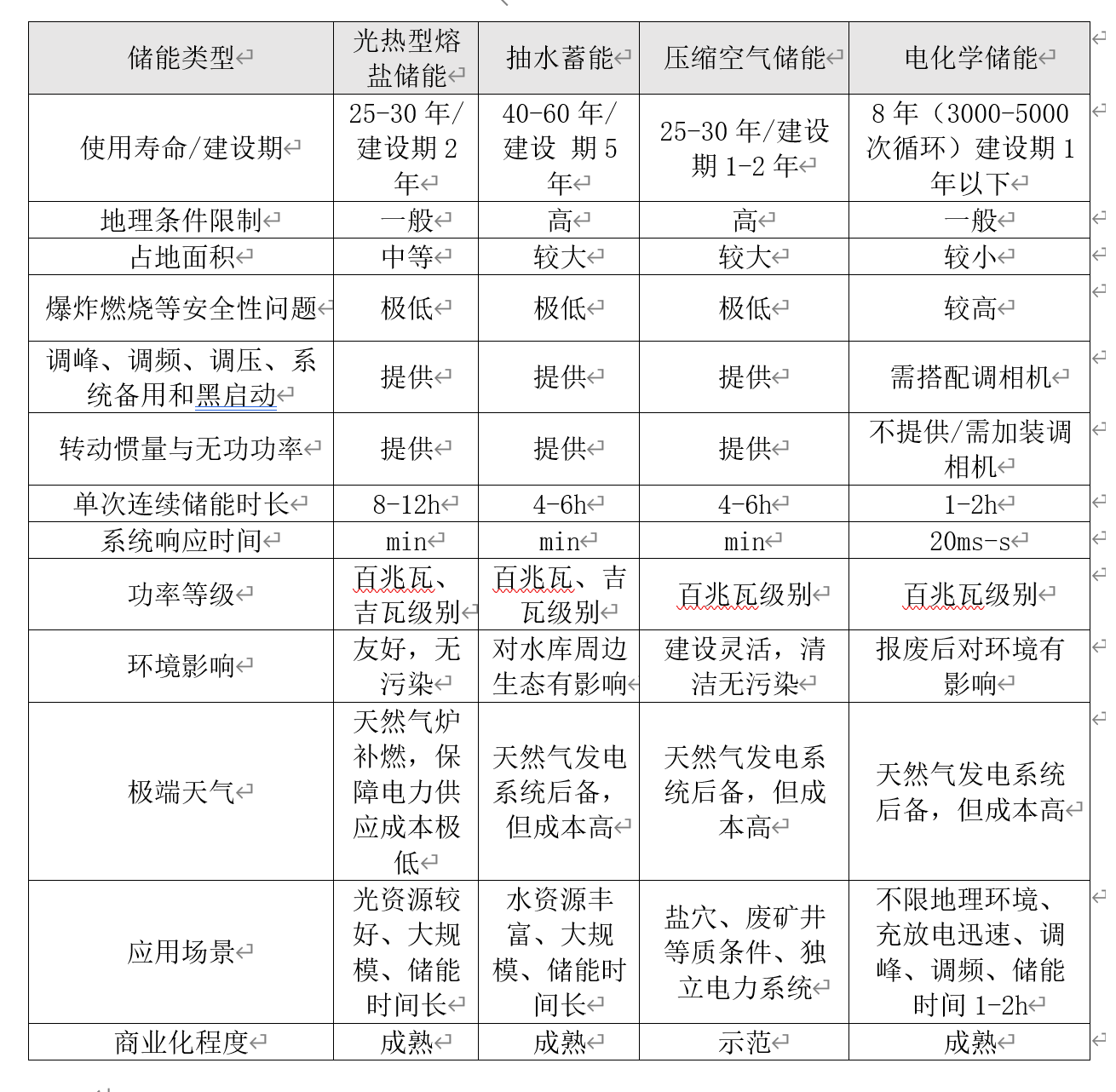 光熱型熔鹽儲(chǔ)能電站與其他儲(chǔ)能方式技術(shù)特點(diǎn)對(duì)比