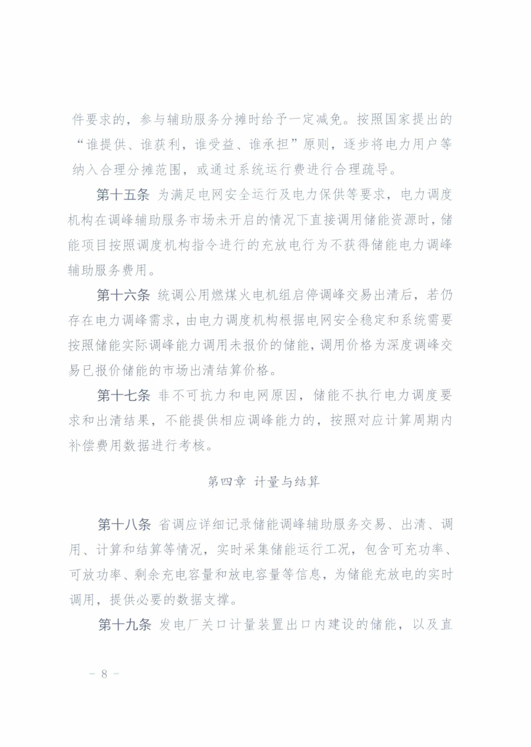 在計量方面,發(fā)電廠關(guān)口計量裝置出口內(nèi)建設(shè)的儲能,以及直接接入電網(wǎng)的儲能充放電量,參與電力調(diào)峰輔助服務(wù)市場需獨立計量計算。