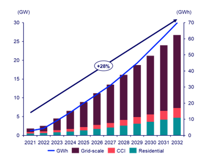 Wood Mackenzie公司高級研究分析師Kashish Shah說,“近年來可再生能源發(fā)電量的激增和競爭激烈的市場設(shè)計,使澳大利亞成為全球最具吸引力的電網(wǎng)規(guī)模儲能市場之一。得益于競爭激烈的批發(fā)市場和頻率控制市場為電池儲能系統(tǒng)提供了多樣化的收入來源,以及澳大利亞政府提供的大量資金為儲能項目提供了收入確定性,我們預(yù)計從現(xiàn)在到2032年,澳大利亞部署的電池儲能系統(tǒng)的裝機容量將增加28%?!?