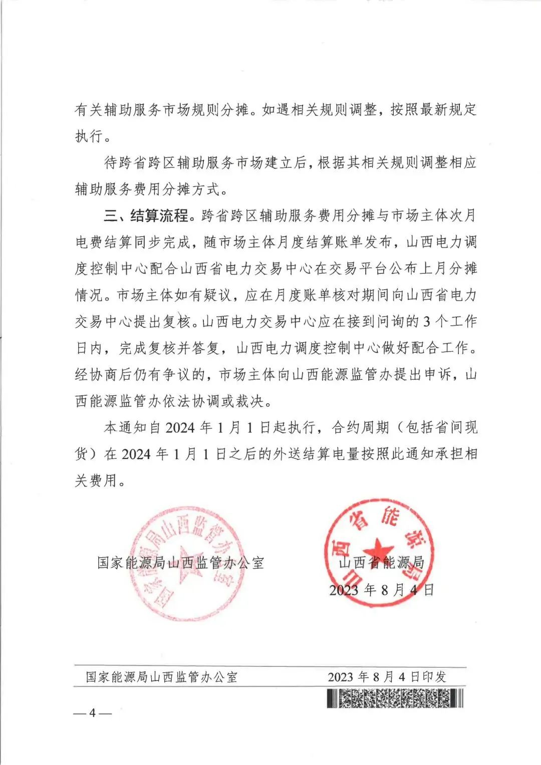 政策自2024年1月1日起執(zhí)行,合約周期(包括省間現(xiàn)貨)在2024年1月1日之后的外送結(jié)算電量按照此通知承擔(dān)相關(guān)費(fèi)用。