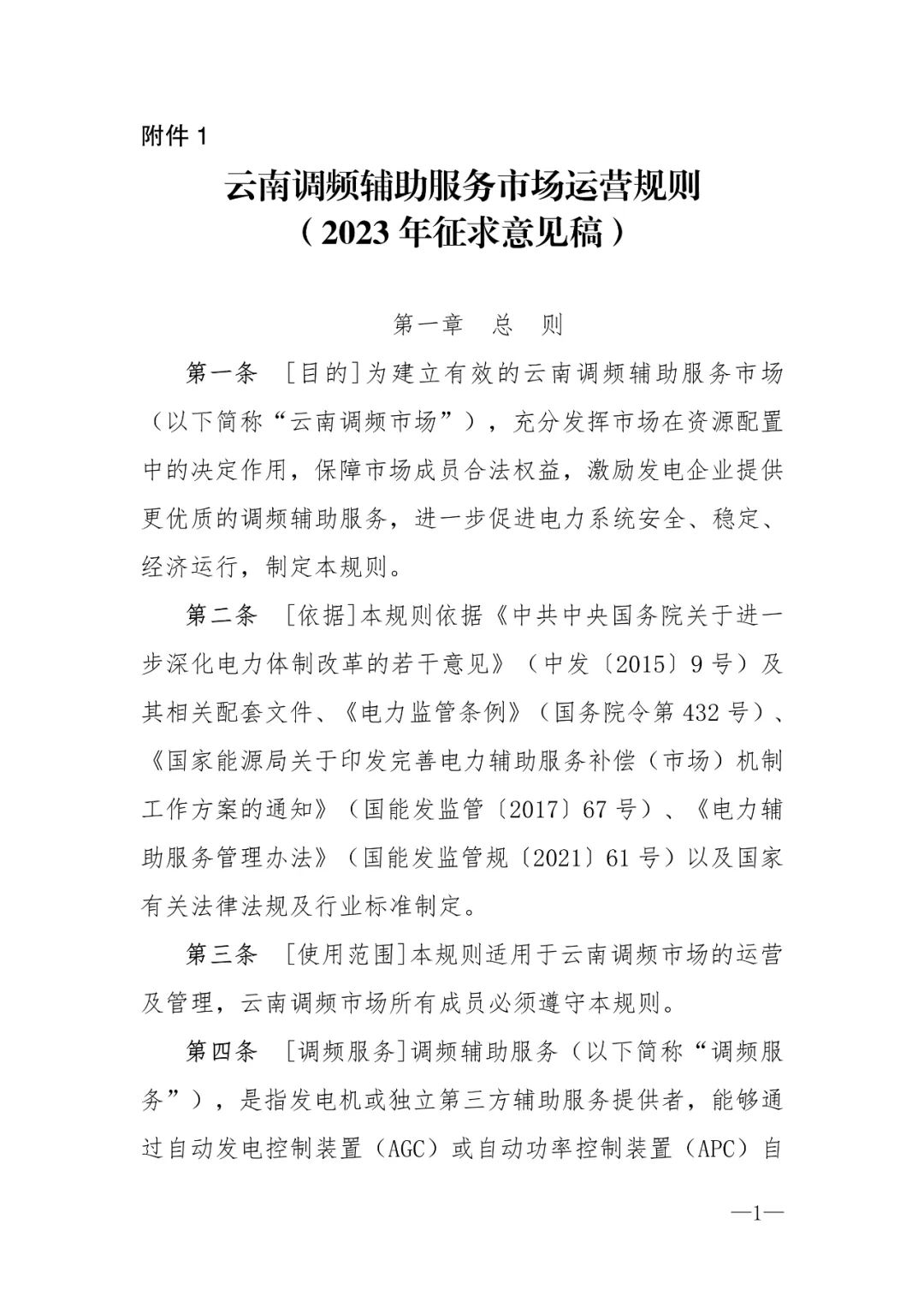 國家能源局云南監(jiān)管辦公室關(guān)于公開征求 《云南調(diào)頻輔助服務(wù)市場(chǎng)運(yùn)營規(guī)則(2023年征求意見稿)》有關(guān)意見建議的通知