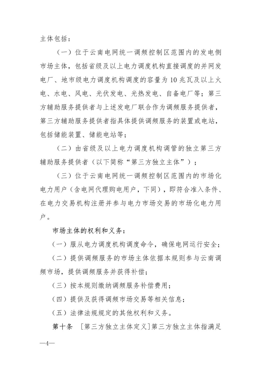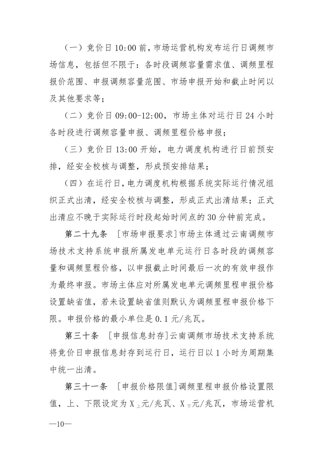 為深入貫徹落實(shí)黨中央、國務(wù)院重大決策部署,按照《電力輔助服務(wù)管理辦法》《完善電力輔助服務(wù)補(bǔ)償(市場(chǎng))機(jī)制工作方案》等有關(guān)文件要求,持續(xù)完善電力輔助服務(wù)市場(chǎng)建設(shè),深化用戶參與的電力輔助服務(wù)分擔(dān)共享機(jī)制,推動(dòng)第三方獨(dú)立主體參與輔助服務(wù)市場(chǎng)建設(shè),結(jié)合云南調(diào)頻輔助服務(wù)市場(chǎng)結(jié)算試運(yùn)行及市場(chǎng)主體反饋情況,云南能源監(jiān)管辦組織有關(guān)單位修訂完善了《云南調(diào)頻輔助服務(wù)市場(chǎng)運(yùn)營規(guī)則》,現(xiàn)向全社會(huì)公開征求意見建議。