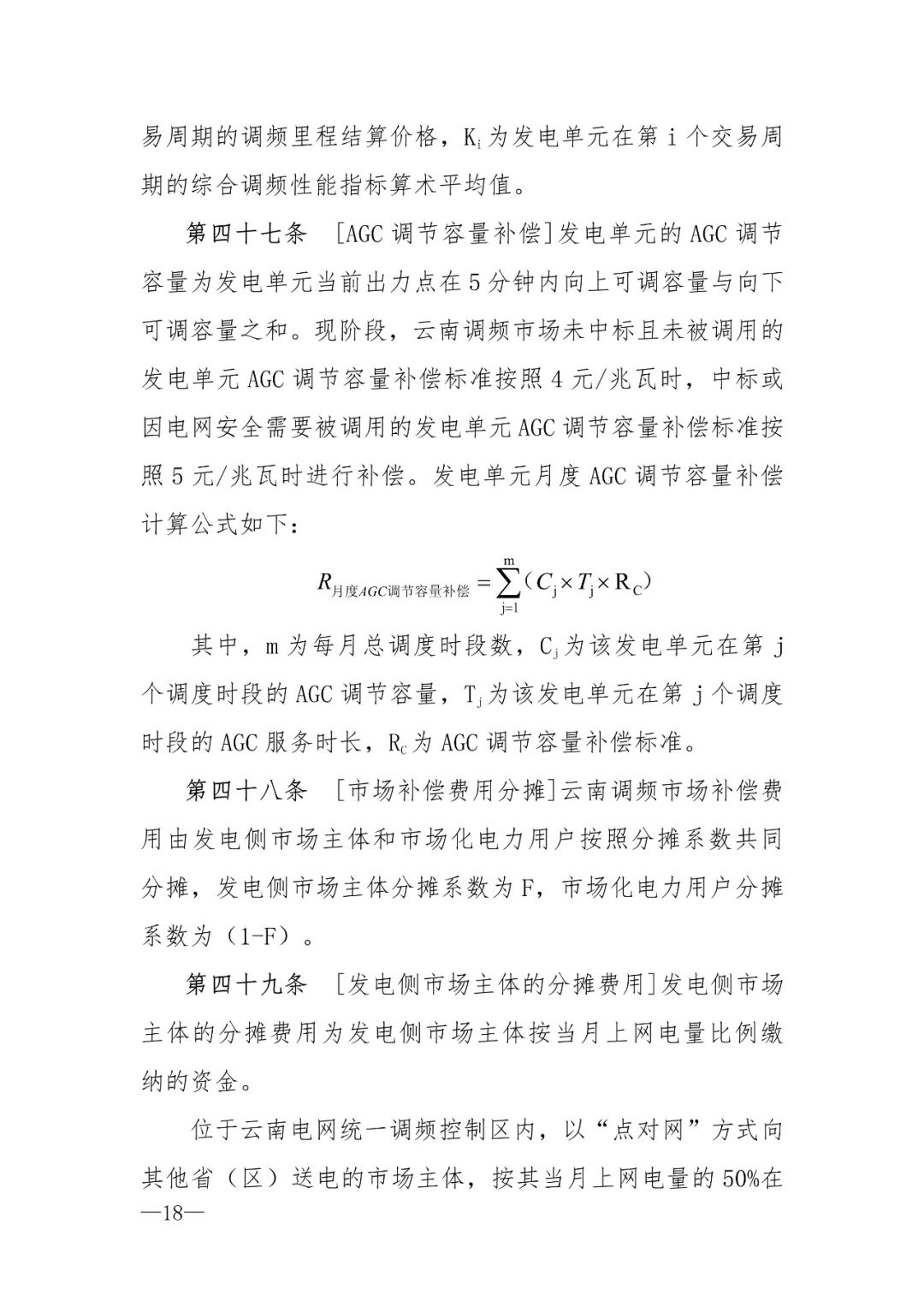云南調(diào)頻市場(chǎng)未中標(biāo)且未被調(diào)用的發(fā)電單元AGC調(diào)節(jié)容量補(bǔ)償標(biāo)準(zhǔn)按照4元/兆瓦時(shí),中標(biāo)或因電網(wǎng)安全需要被調(diào)用的發(fā)電單元AGC調(diào)節(jié)容量補(bǔ)償標(biāo)準(zhǔn)按照5元/兆瓦時(shí)進(jìn)行補(bǔ)償。
