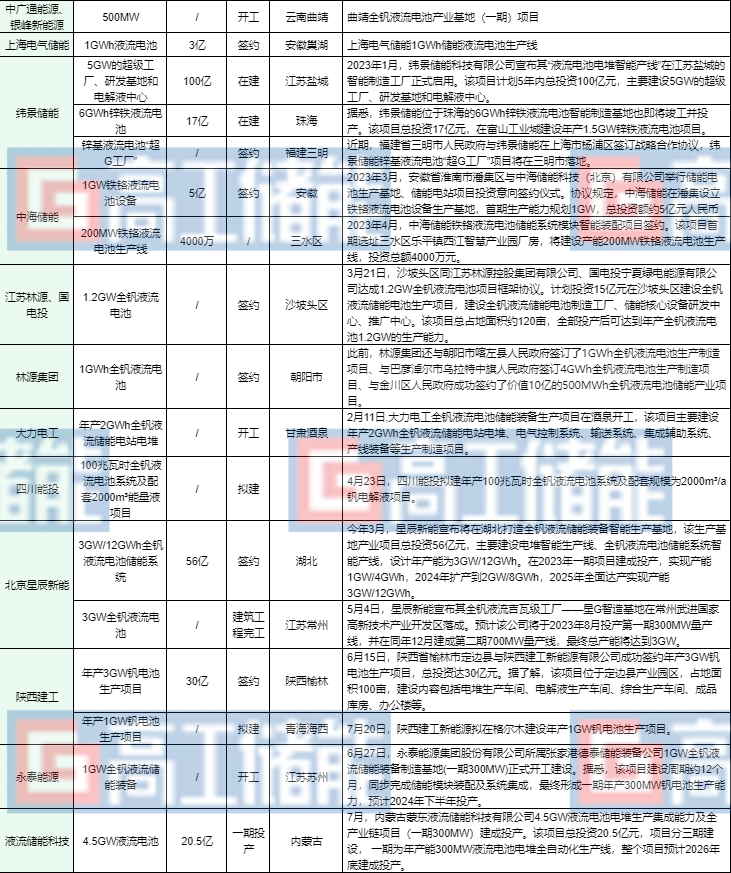 ■ 13家液流電池企業(yè):中廣通能源&銀峰新能源、上海電氣、緯景儲(chǔ)能、中海儲(chǔ)能、林源集團(tuán)、國(guó)電投、四川能投、大力電工、星辰新能、陜西建工、永泰能源、液流儲(chǔ)能;