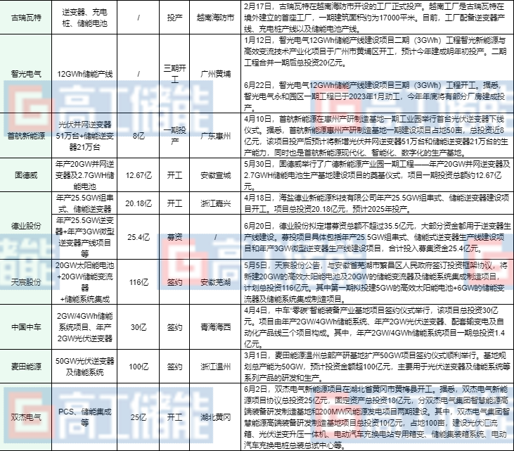 以下是高工儲(chǔ)能整理的儲(chǔ)能企業(yè)擴(kuò)產(chǎn)項(xiàng)目動(dòng)態(tài)(部分):
