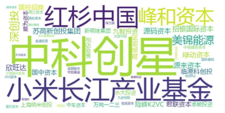 在我們統(tǒng)計的124個公司投資案例中,共有523家投資機構參與了投資。前十位活躍的投資機構分別為中科創(chuàng)星、小米長江產(chǎn)業(yè)基金、紅杉中國、峰和資本、美錦能源、深創(chuàng)投、高瓴創(chuàng)投、國投招商、國中資本和九智投資。