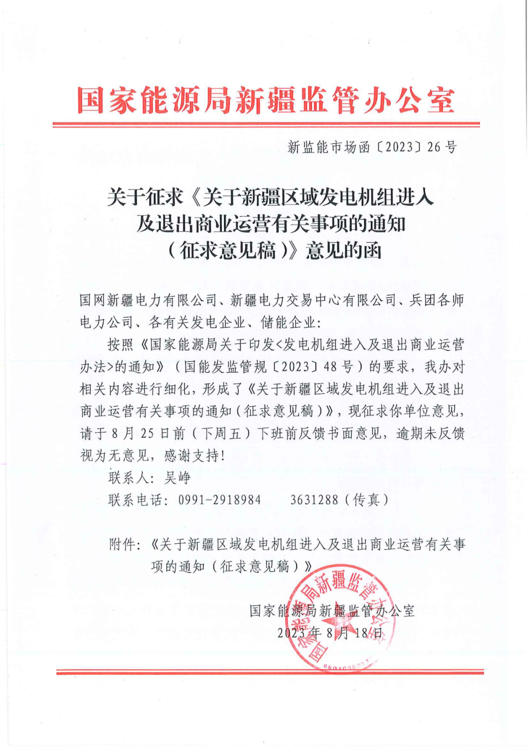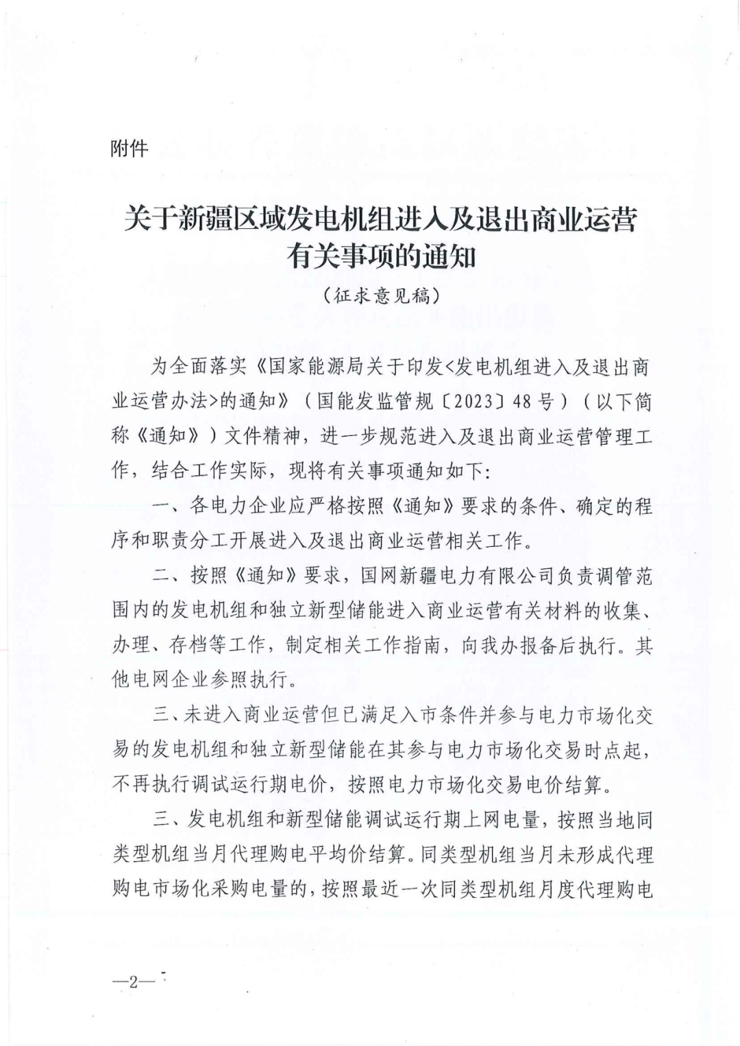 中國儲能網(wǎng)訊:8月28日,新疆能監(jiān)辦就《關(guān)于新疆區(qū)域發(fā)電機(jī)組進(jìn)入及退出商業(yè)運營有關(guān)事項的通知》征求意見。