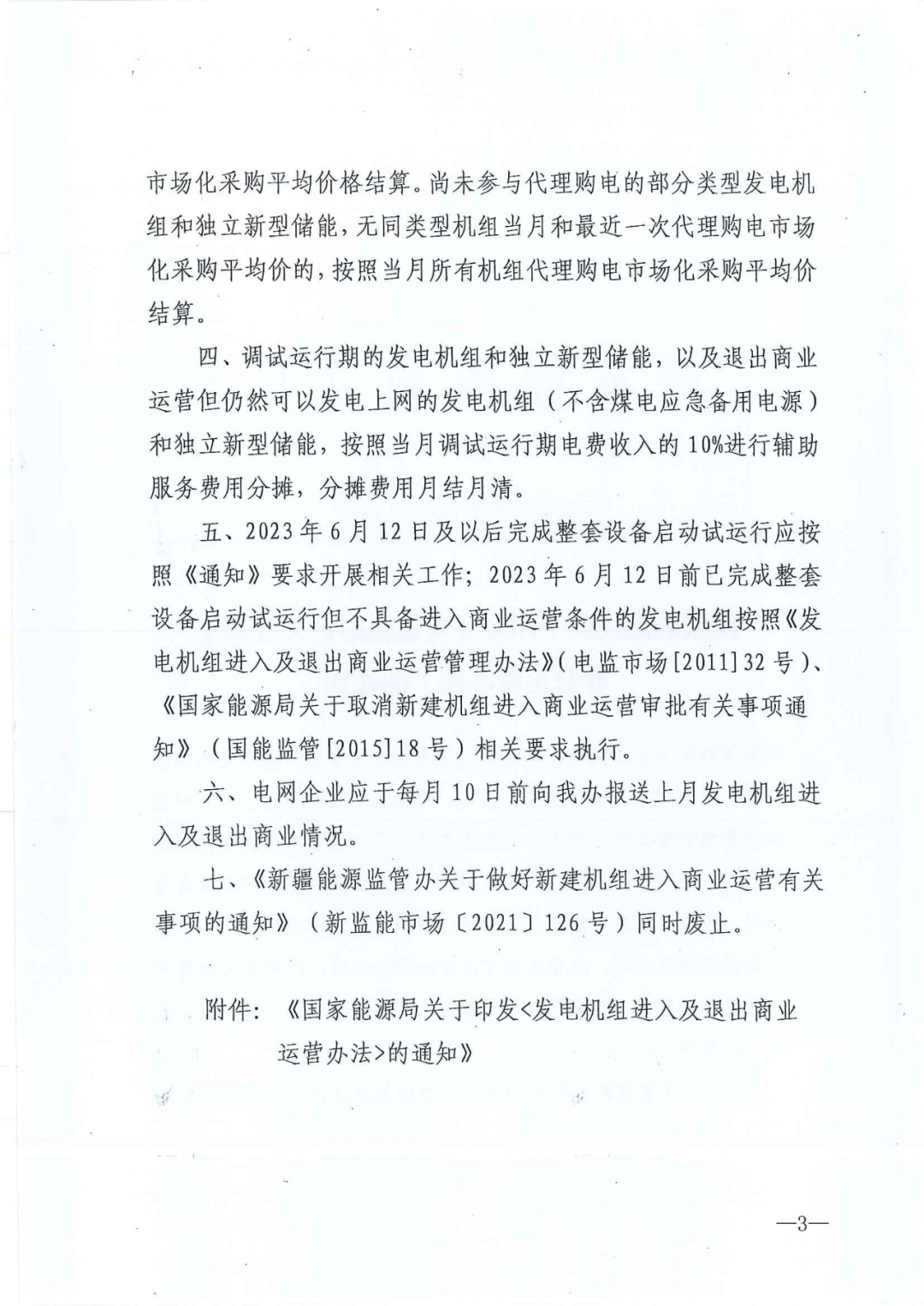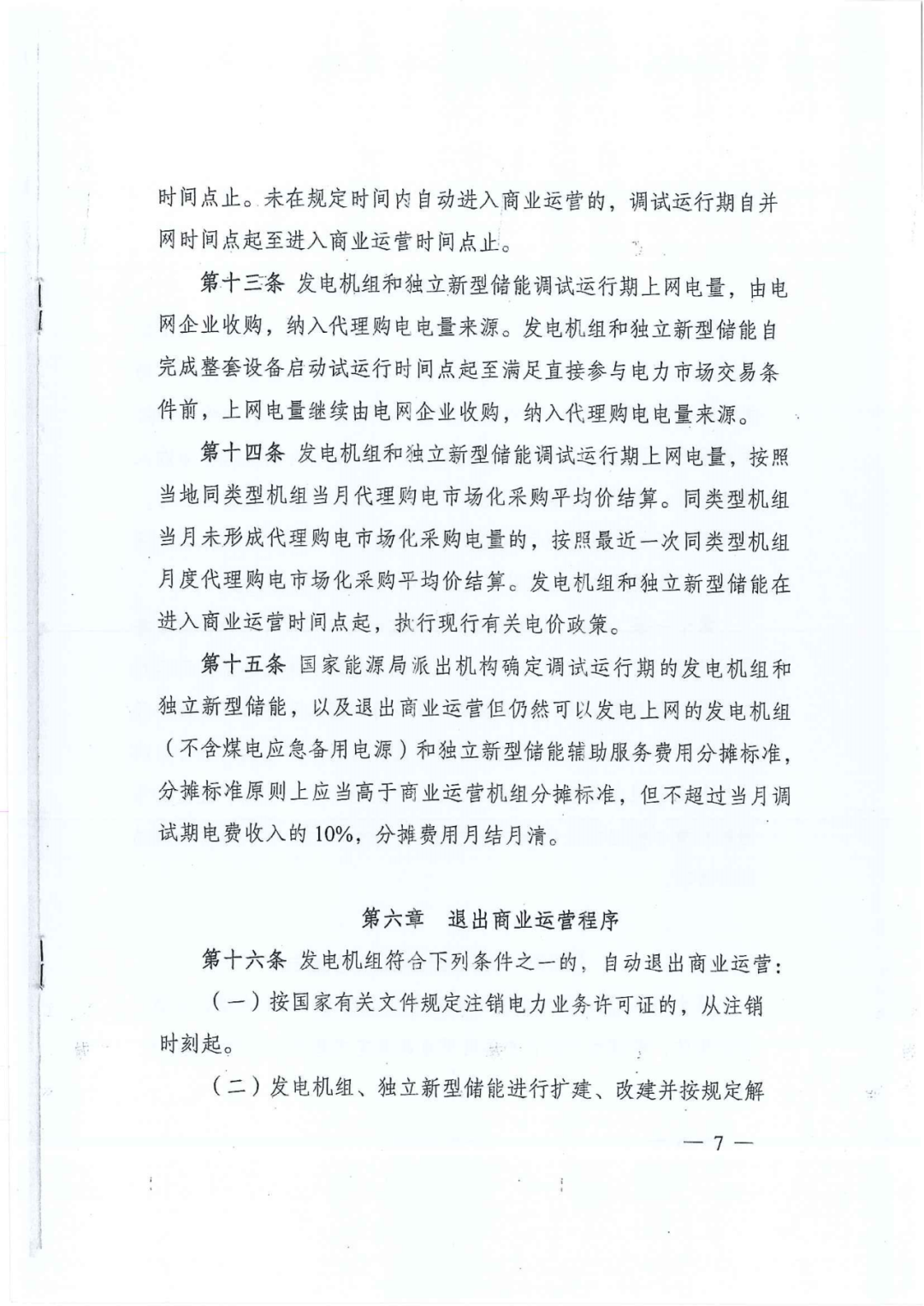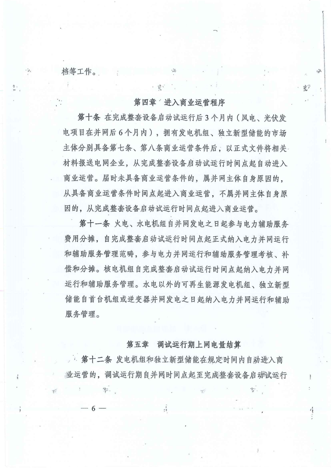 未進(jìn)入商業(yè)運營但已滿足入市條件并參與電力市場化交易的發(fā)電機(jī)組和獨立新型儲能在其參與電力市場化交易時點起,不再執(zhí)行調(diào)試運行期電價,按照電力市場化交易電價結(jié)算。