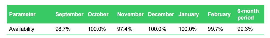 在整個報告期間,GESS的可用性也很高,所有月份記錄的平均>為99%,不低于97.4%(見表9和表10)。