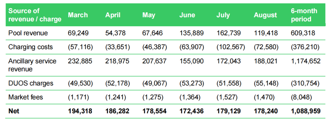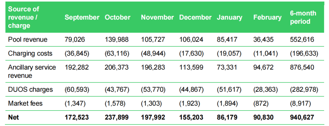 在運營的第二年,頻率調節(jié)收入與運營第一年相比有所下降,2020 年 7 月至 2021 年 2 月期間 FCAS 收入平均每月約 15 萬澳元,而 2019 年 7 月至 2020 年 2 月期間每月平均收入約 50 萬澳元。